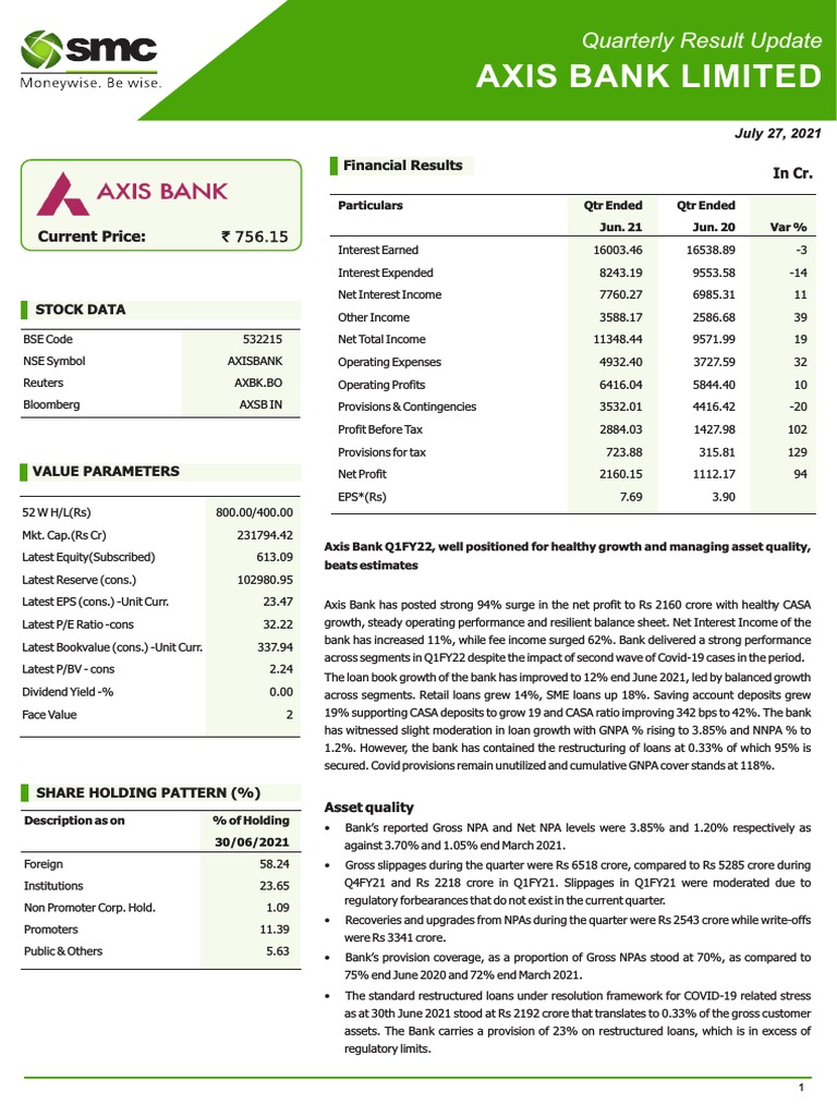 Axis Bank Limited Quarterly Result Update PDF Financial Analyst Axis Bank Quarterly Results download online the list of axis bank quarterly result reports from 2007 to 2021. axis bank reported strong core operating performance, margin expansion, sequential pat growth and healthy loan and deposit. get axis bank latest quarterly results, financial statements and axis bank detailed profit and loss accounts. See the key highlights of the latest. axis bank. Axis Bank Quarterly Results.